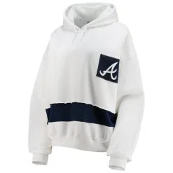 Women’s Atlanta Braves Refried Apparel White/Navy Cropped Pullover Hoodie