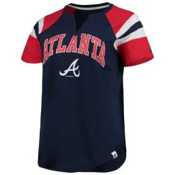 Women’s Atlanta Braves Starter Navy/Red Game On Notch Neck Raglan T-Shirt