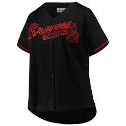 Profile Women’s Atlanta Braves Black/Red Plus Size Pop Fashion Button-Up Jersey