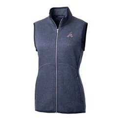 Women’s Atlanta Braves Cutter & Buck Heather Navy Americana Logo Mainsail Sweater-Knit Full-Zip Vest