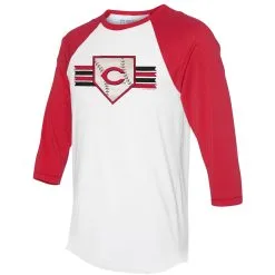 Women’s Cincinnati Reds Tiny Turnip White/Red Base Stripe 3/4-Sleeve Raglan T-Shirt