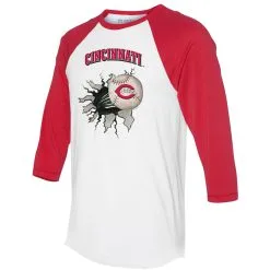Women’s Cincinnati Reds Tiny Turnip White/Red Baseball Pow 3/4-Sleeve Raglan T-Shirt