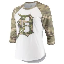 Women’s Detroit Tigers Majestic Threads White/Camo Raglan 3/4-Sleeve T-Shirt