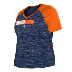 Women's Detroit Tigers New Era Navy Plus Size Space Dye Raglan V-Neck T-Shirt