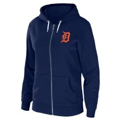 Women’s Detroit Tigers WEAR By Erin Andrews Navy Sponge Fleece Full-Zip Hoodie