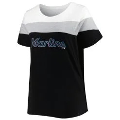 Profile Women’s Miami Marlins White/Black Plus Size Colorblock T-Shirt
