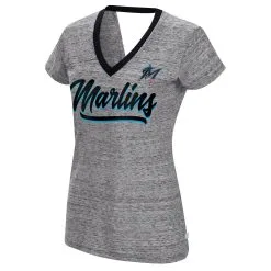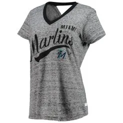 Women’s Miami Marlins Touch Black Hail Mary Back Wrap Space-Dye V-Neck T-Shirt