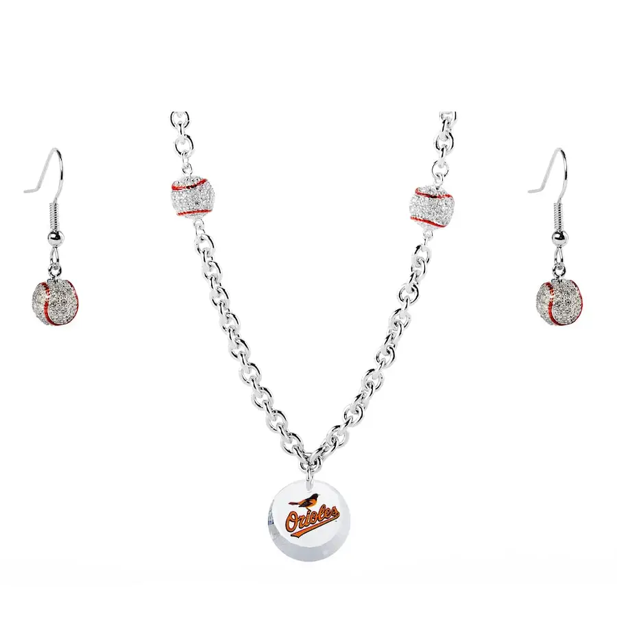 Celebrate your love for the Baltimore Orioles with this Swarovski baseball necklace and earring set!