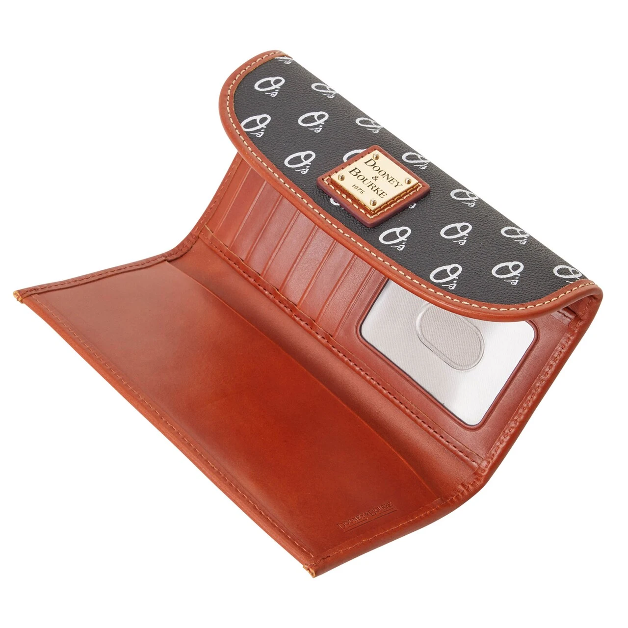 Take your love for the Baltimore Orioles with you on the go with this Signature Continental clutch from Dooney & Bourke. It features a medley of pockets and card slots to carry your necessities as you celebrate your squad. Plus, everyone will know which MLB team you root for thanks to the Baltimore Orioles logo featured all over this accessory.