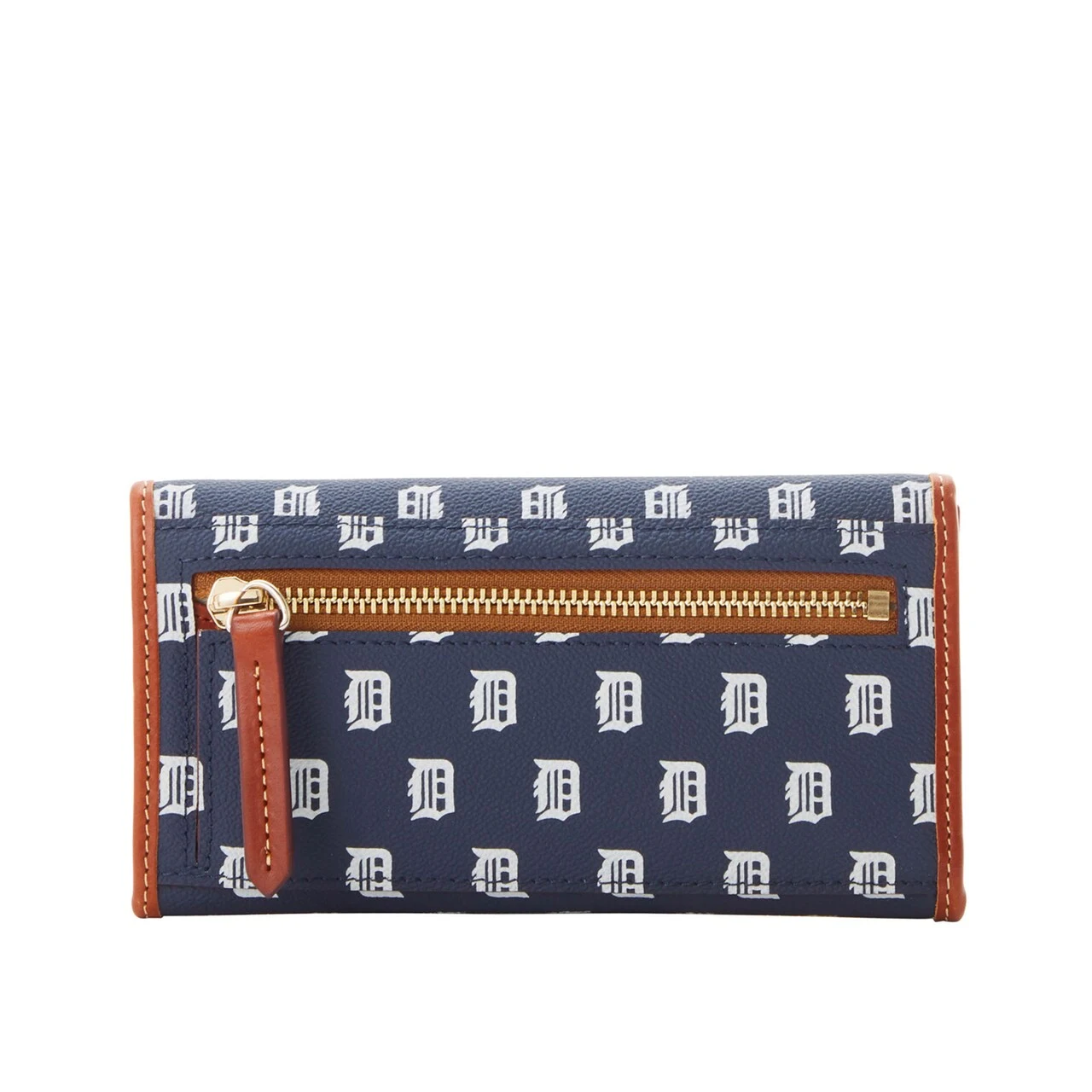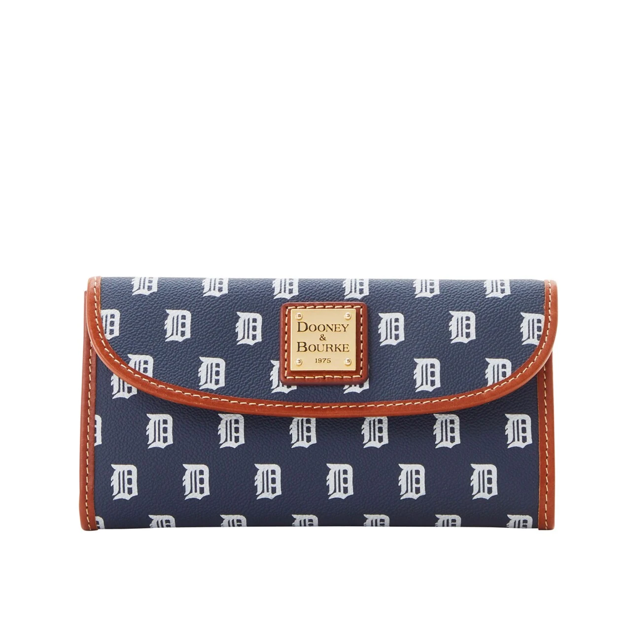 Take your love for the Detroit Tigers with you on the go with this Signature Continental clutch from Dooney & Bourke. It features a medley of pockets and card slots to carry your necessities as you celebrate your squad. Plus, everyone will know which MLB team you root for thanks to the Detroit Tigers logo featured all over this accessory.