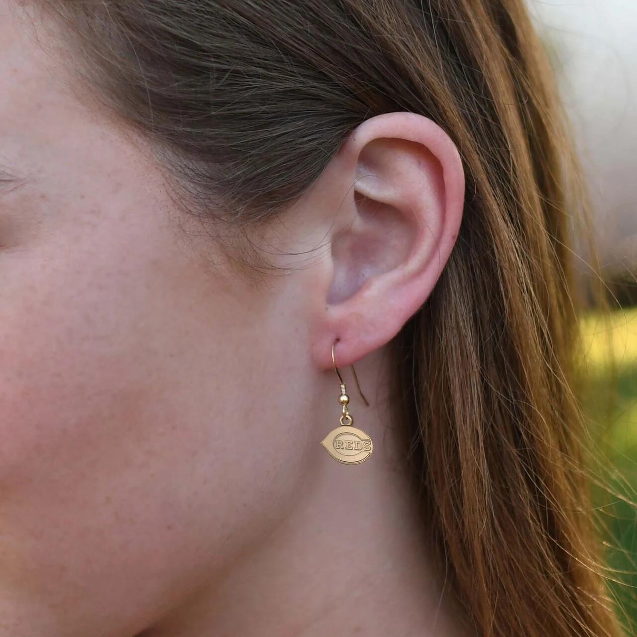 Show off your pride for your Cincinnati Reds with these one-of-a-kind Gold-Plated Sterling Silver Extra-Small Dangle Earrings!