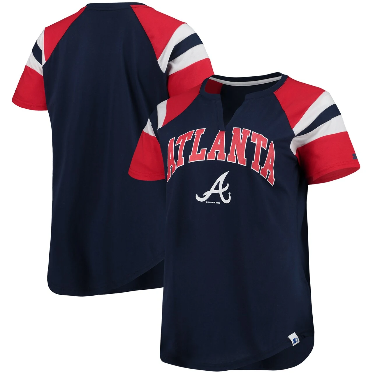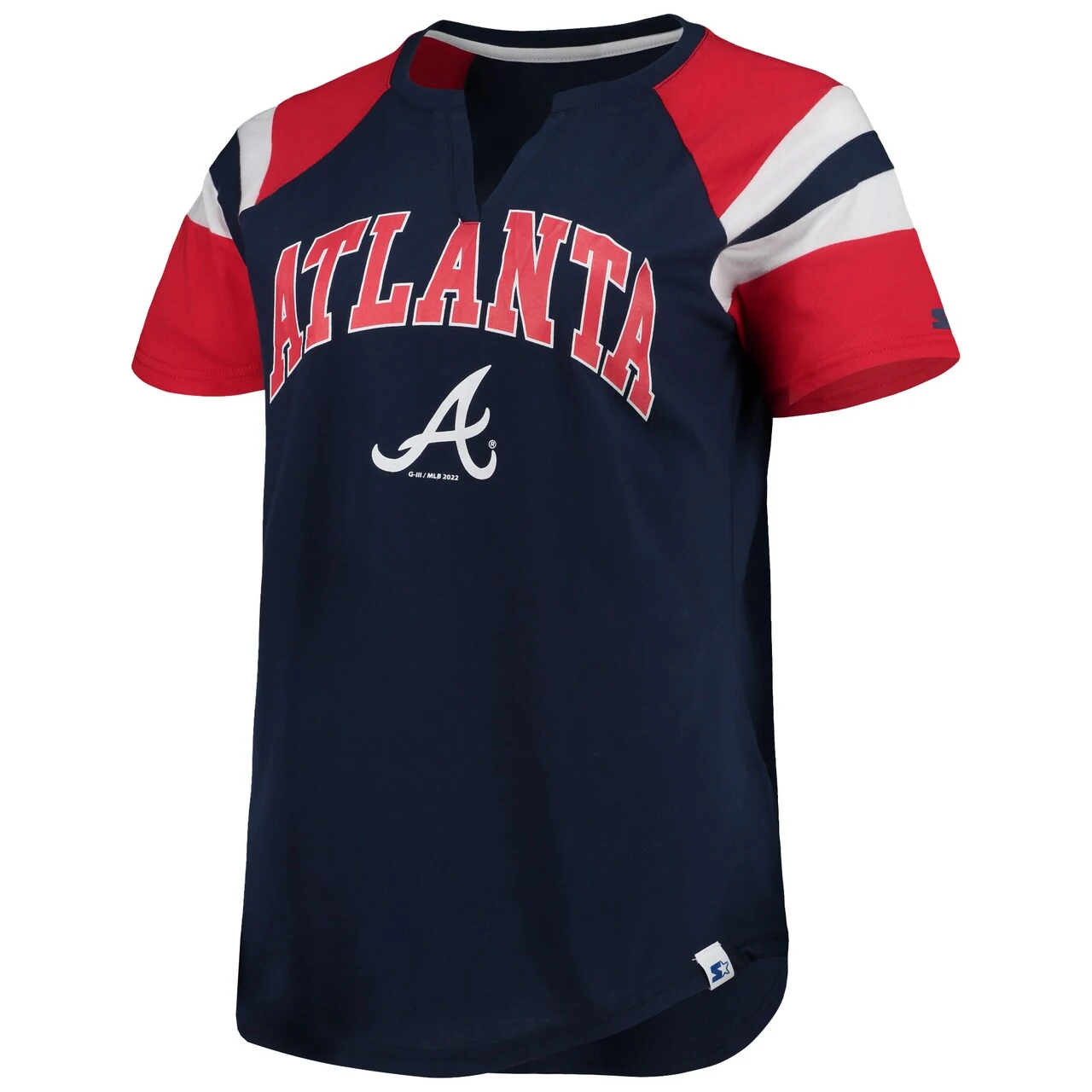 Add a stylish touch to your gameday getup by adding this Atlanta Braves Game On Notch Neck T-shirt from Starter. The signature team graphics and sewn-on stripes perfectly call attention to your Atlanta Braves fandom. Plus, the raglan sleeves offer added ease of mobility, while the cotton design provides a soft fit and feel that makes this top a great choice for nearly any casual occasion.
