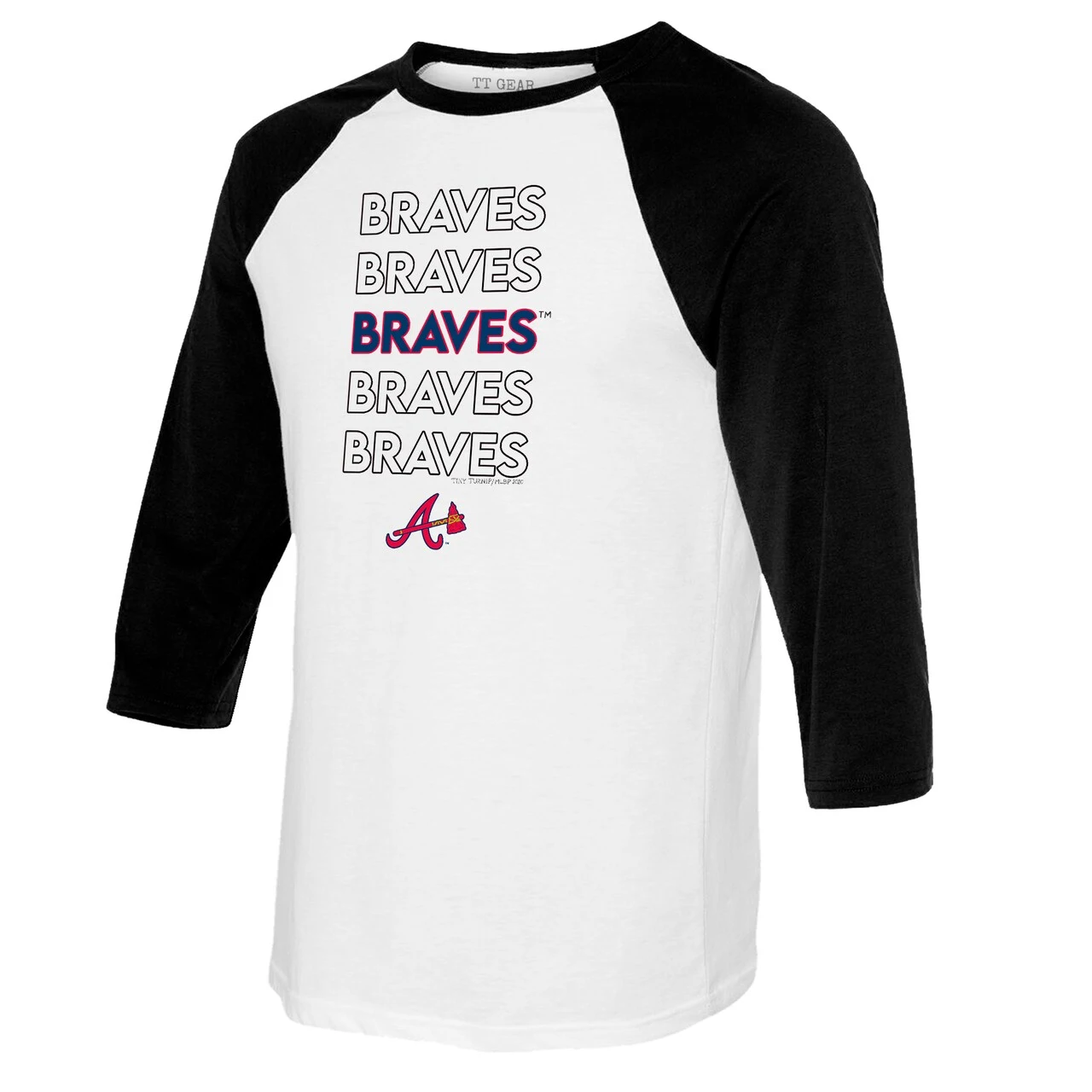 You’re an avid Atlanta Braves fan and love to flaunt it. Show the Atlanta Braves your support by grabbing this Stacked Raglan 3/4 Sleeve T-Shirt from Tiny Turnip. It features bold Atlanta Braves graphics, so no one will be able to question where your allegiance lies every time you rock this sweet gear.
