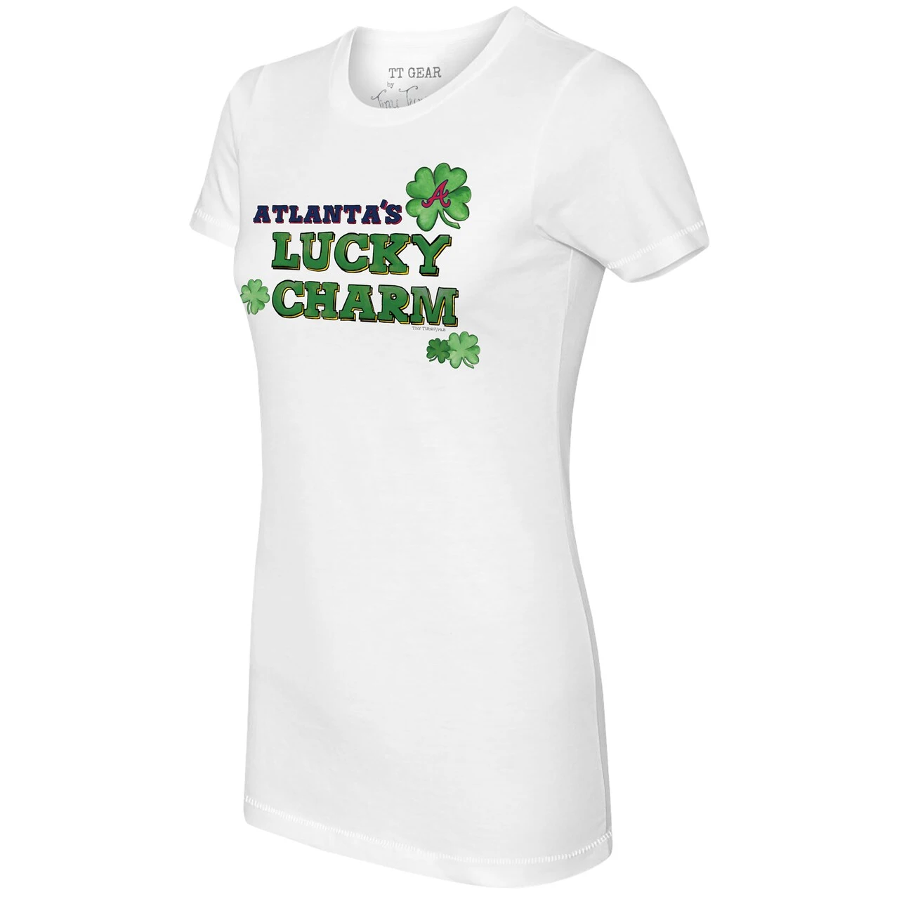Show off your pride for the Atlanta Braves with this Lucky Charm T-Shirt from Tiny Turnip. The printed graphics showcase a fun design that highlights your love for the Atlanta Braves, which is also sold in children’s sizes to give the opportunity to match. The material is lightweight and breathable, making it the perfect addition to your everyday wardrobe.
