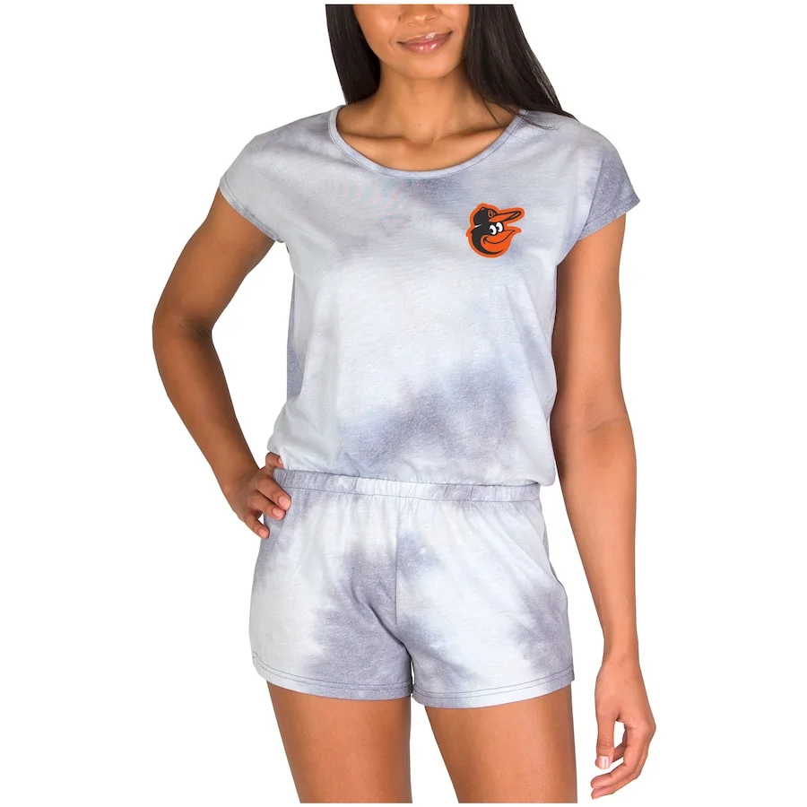 Show off your Baltimore Orioles pride in a stylish way with this Marina Romper from Concepts Sport. It features a soft, tie-dyed material with an elastic waistband to provide a comfortable fit. The bold Baltimore Orioles logo flaunts your unwavering pride, ensuring everyone knows where your allegiance lies.