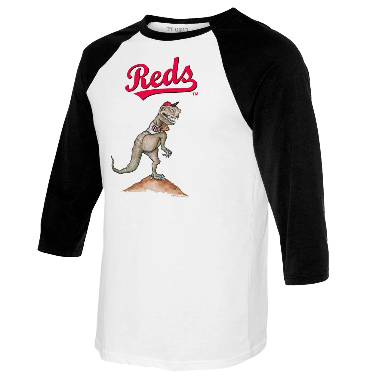 You’re an avid Cincinnati Reds fan and love to flaunt it. Show the Cincinnati Reds your support by grabbing this TT Rex Raglan 3/4 Sleeve T-Shirt from Tiny Turnip. It features bold Cincinnati Reds graphics, so no one will be able to question where your allegiance lies every time you rock this sweet gear.