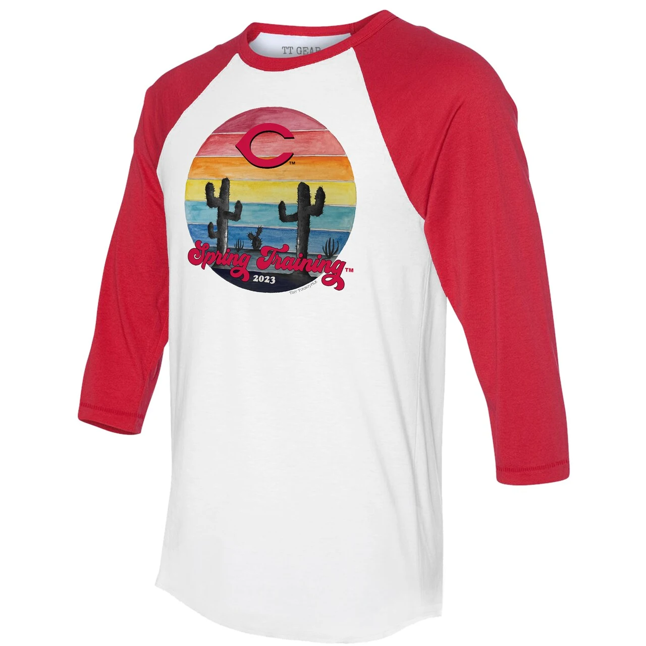 Show off your enthusiasm for Cincinnati Reds game day with this 2023 Spring Training 3/4-Sleeve Raglan T-Shirt from Tiny Turnip. The raglan sleeves feature a wider underarm area that provides more space for movement, and the 3/4-sleeve length gives you an effortlessly cool and casual look. Matching graphics are also available in youth, toddler and infant sizes, so the whole family can have the same spirited look for the next Cincinnati Reds game.
