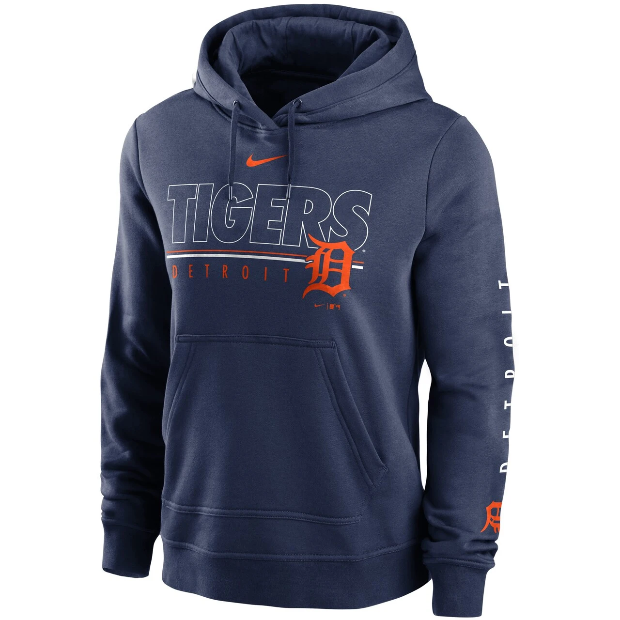 This Detroit Tigers Team Outline Club hoodie from Nike is the perfect piece of gear for when the sun sets at the game. Cozy and fitting comfortably to the torso, this pullover will be a must-have on those chilly nights spent at the ballpark. It features phenomenal detailing on the chest and down the left sleeve so that your passion for the Detroit Tigers will always shine brightly.