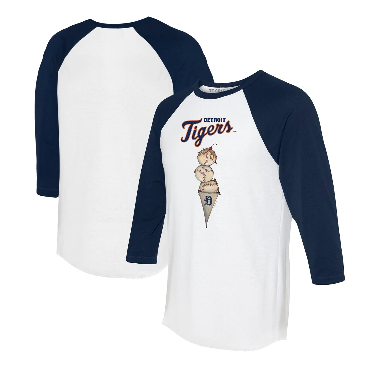 Show off your enthusiasm for Detroit Tigers game day with this Triple Scoop 3/4-Sleeve Raglan T-Shirt from Tiny Turnip. The raglan sleeves feature a wider underarm area that provides more space for movement, and the 3/4-sleeve length gives you an effortlessly cool and casual look. Matching graphics are also available in youth, toddler and infant sizes, so the whole family can have the same spirited look for the next Detroit Tigers game.
