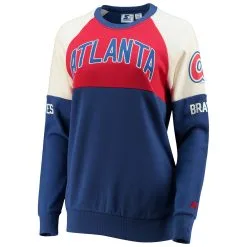 Women’s Atlanta Braves Starter Red/Royal Baseline Raglan Historic Logo Pullover Sweatshirt
