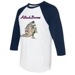 Women’s Atlanta Braves Tiny Turnip White/Navy Stega 3/4-Sleeve Raglan T-Shirt