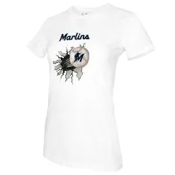 Women’s Miami Marlins Tiny Turnip White Baseball Tear T-Shirt