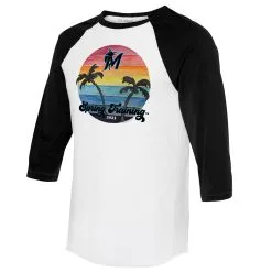 Women’s Miami Marlins Tiny Turnip White/Black 2023 Spring Training 3/4-Sleeve Raglan T-Shirt