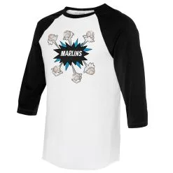 Women’s Miami Marlins Tiny Turnip White/Black Fastball 3/4-Sleeve Raglan T-Shirt