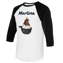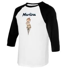 Women’s Miami Marlins Tiny Turnip White/Black Sundae Helmet 3/4-Sleeve Raglan T-Shirt