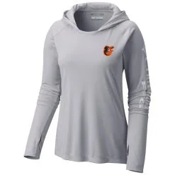 Women’s Baltimore Orioles Columbia Gray Tidal Long Sleeve Hoodie T-Shirt