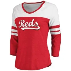 Women’s Cincinnati Reds Fanatics Branded Heathered Wordmark Tri-Blend V-Neck T-Shirt