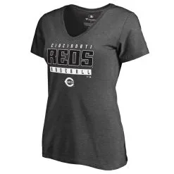 Women’s Cincinnati Reds Fanatics Branded Ash Charcoal Stack V-Neck T-Shirt