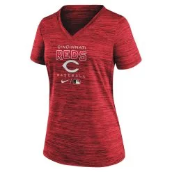 Women’s Cincinnati Reds Nike Red Authentic Collection Velocity Practice Performance V-Neck T-Shirt