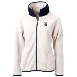Women’s Detroit Tigers Cutter & Buck White/Navy Cascade Eco Sherpa Fleece Full-Zip Jacket